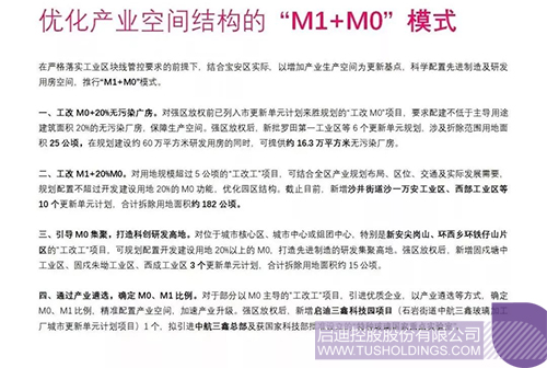 寶安城市更新不斷探索符合寶安區(qū)情的方法路徑,打造“寶安模式”?!皢⒌先慰萍紙@項目”(申報名稱:石巖街道中航三鑫玻璃加工廠城市更新單元)被列入“優(yōu)化產(chǎn)業(yè)空間結構的‘M1+M0’模式”,并成為模式中通過產(chǎn)業(yè)遴選,確定以M0為主導的“工改工”項目的首要范例。