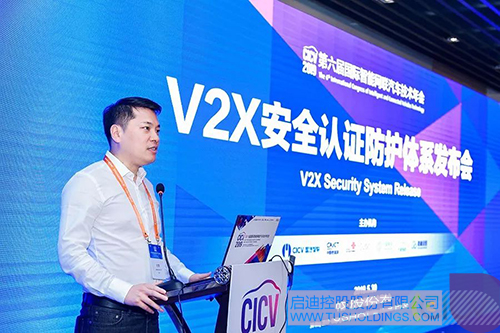 5月30日,啟迪云控攜手國汽智聯(lián)、信通院、聯(lián)通智網(wǎng)科技有限公司、中國移動通信有限公司研究院、天翼物聯(lián)科技有限公司聯(lián)合發(fā)布“V2X安全認證防護體系”。啟迪國際總裁沈霄代表啟迪云控出席會議并致辭。