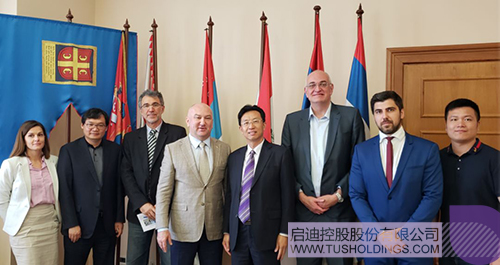 塞爾維亞國家創(chuàng)新和科技發(fā)展部部長奈納德·波波維奇(左四)會見啟迪控股代表團(tuán)