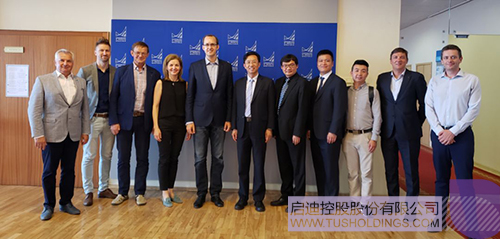 立陶宛國家經(jīng)濟(jì)與創(chuàng)新部副部長烏斯·斯庫奧蒂斯(左五)會見啟迪控股代表團(tuán)