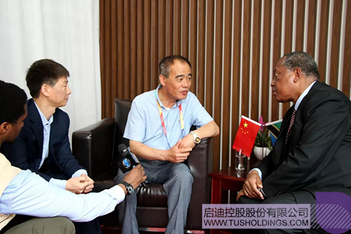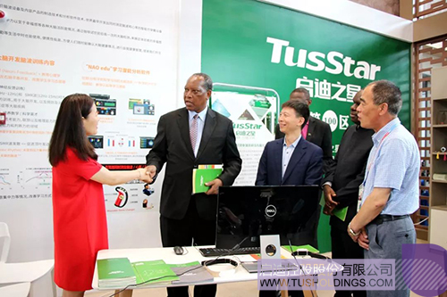 在參觀展區(qū)之前,卡布迪外長在貴賓室與啟迪之星團隊親切會談。團隊向卡布迪外長詳細介紹了清華科技園、啟迪控股和啟迪之星的發(fā)展歷程以及啟迪之星打造的全球創(chuàng)新孵化網絡情況,并分享了啟迪之星在埃及開羅創(chuàng)建非洲第一個孵化基地的案例。卡布迪外長對啟迪之星的孵化模式和所取得的成就表示極大興趣和贊賞,并代表坦桑尼亞達累斯薩拉姆大學向啟迪之星發(fā)出誠摯的合作邀請,希望啟迪之星和達累斯薩拉姆大學盡早啟動合作交流,歡迎啟迪之星的創(chuàng)新高鐵駛入坦桑尼亞。