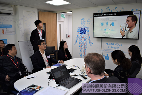 金勤獻(xiàn)院長(zhǎng)一行與Owlstone、Biosceptre兩家劍橋的生命科技研發(fā)企業(yè)的負(fù)責(zé)人進(jìn)行交流,Owlstone是一家從事呼吸活檢技術(shù)全球領(lǐng)先的創(chuàng)新研發(fā)企業(yè),獲得多家知名風(fēng)險(xiǎn)投資青睞,目前與上海仁濟(jì)醫(yī)院合作開(kāi)展肺癌早期檢測(cè)的臨床試驗(yàn);Biosceptre專注于開(kāi)發(fā)針對(duì)nfP2X 7的下一代癌癥治療方案,目前已完成臨床I期試驗(yàn),該公司在獲得啟迪投資后正積極探索落地中國(guó)的方案。隨后,金勤獻(xiàn)院長(zhǎng)介紹了清華大學(xué)在醫(yī)學(xué)領(lǐng)域強(qiáng)大的學(xué)術(shù)資源與研發(fā)能力,同時(shí)介紹了全球健康藥物研發(fā)中心與荷塘資本,他表示清華大學(xué)已經(jīng)建立起具備全方位創(chuàng)新服務(wù)能力的成果轉(zhuǎn)化體系,期待與世界前沿的生命科技研發(fā)企業(yè)在聯(lián)合研發(fā)、市場(chǎng)拓展、股權(quán)投資等開(kāi)展多層次合作。
