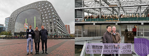 當(dāng)?shù)貢r(shí)間10月4日下午,在世界園藝中心國(guó)際合作總監(jiān)Mark Zwinkels的陪同下,胡波一行考察了素有“全球最美菜市場(chǎng)”之稱(chēng)的荷蘭鹿特丹繽紛菜市場(chǎng)(Markthal)和全球首個(gè)海上漂浮農(nóng)場(chǎng)(Floating Farm),會(huì)見(jiàn)了荷蘭鹿特丹繽紛菜市場(chǎng)(Markthal)的項(xiàng)目總策劃人Marcel Kroes, 海上漂浮農(nóng)場(chǎng)(Floating Farm)創(chuàng)始人Peter Van Wingerden,達(dá)成了項(xiàng)目投資和引入中國(guó)市場(chǎng)的合作意向。荷蘭鹿特丹繽紛菜市場(chǎng)(Markthal)是基于鹿特丹市中心舊市集的城市更新改造項(xiàng)目,已成為集餐飲、購(gòu)物、娛樂(lè)、住宿功能為一體的新型商業(yè)綜合體。海上漂浮農(nóng)場(chǎng)(Floating Farm)是生產(chǎn)加工一體化的農(nóng)業(yè)科技項(xiàng)目,位于緊鄰市中心的海邊,優(yōu)越的地理位置不僅可以為城市居民帶來(lái)新鮮、健康的食物,而且大大縮短了運(yùn)輸距離,減少環(huán)境污染。