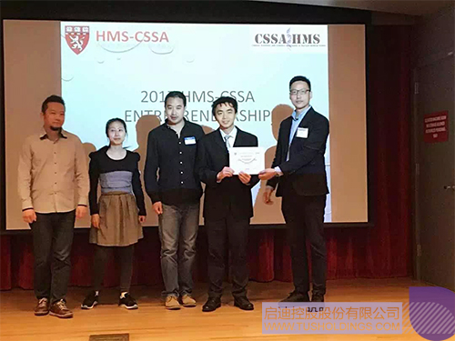 留學(xué)新加坡國(guó)立大學(xué)、英國(guó)牛津大學(xué)胡博士,從易寒開先生手中接過本次大賽最高獎(jiǎng)項(xiàng),“哈佛醫(yī)學(xué)院華人啟迪愛創(chuàng)獎(jiǎng)”