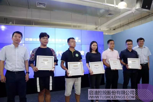 啟迪控股副總裁、啟迪數(shù)字集團(tuán)董事長趙東(左一)與啟迪控股副總裁、啟迪之星董事長張金生(右一)共同為首批5家入孵企業(yè)代表授牌