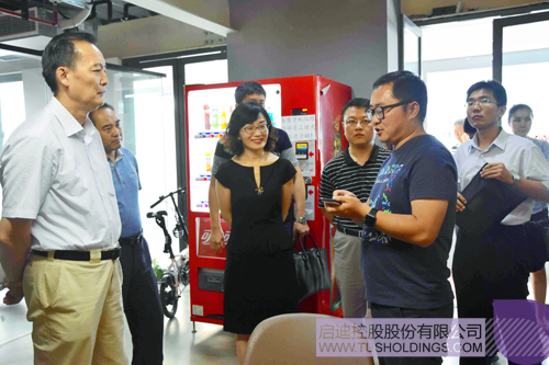 黃榮(左一)參觀啟迪之星(上海)在孵企業(yè)“有得賣”