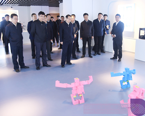 易煉紅書(shū)記(前排左三)調(diào)研雙向雙創(chuàng)基地機(jī)器人項(xiàng)目