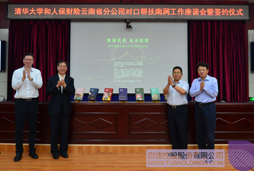 簽約儀式后,由云南啟迪協(xié)同啟迪科服成立的無量山啟迪大健康科技有限公司“土林鳳凰”新產品正式發(fā)布,姜勝耀、吉向陽、龍大偉、人保財險云南省分公司總經理雙磊(清華校友)共同為新產品揭幕。作為啟迪精準助力南澗發(fā)展“六個一”之茶產業(yè)發(fā)展舉措,此次新品以“無量茗香 水木情深”為主題,由清華大學美院師生進行設計。