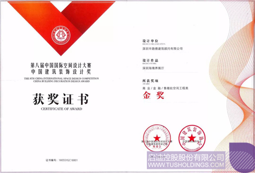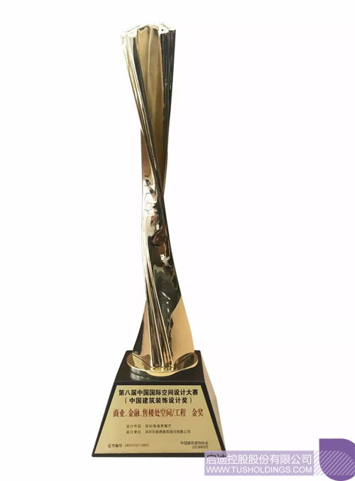 “中國建筑裝飾設(shè)計大獎”售樓處空間工程類金獎證書及獎杯