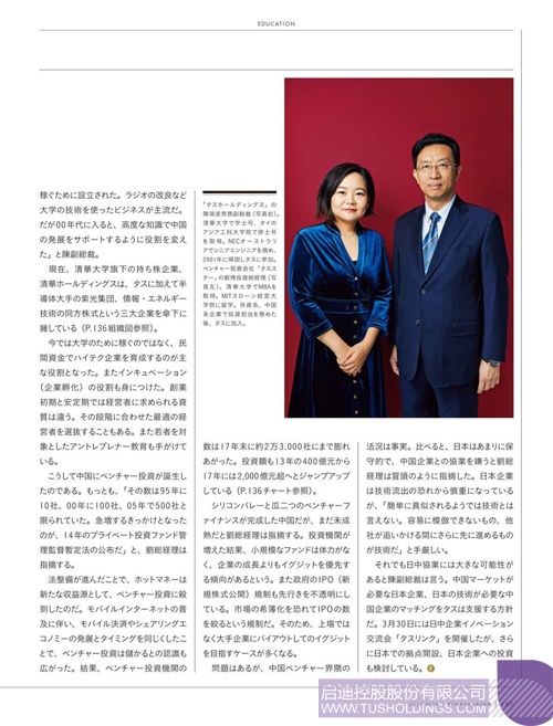 陳鴻波則認(rèn)為,中日協(xié)作有很大的可能性。啟迪控股正為需要中國(guó)市場(chǎng)的日本企業(yè)和需要日本技術(shù)的中國(guó)企業(yè)搭建平臺(tái),促進(jìn)雙方的合作。啟迪控股于今年3月底在東京舉辦了中日企業(yè)創(chuàng)新交流會(huì)“TusLink”,目前還考慮在日本開設(shè)據(jù)點(diǎn)以及對(duì)日本企業(yè)進(jìn)行投資。