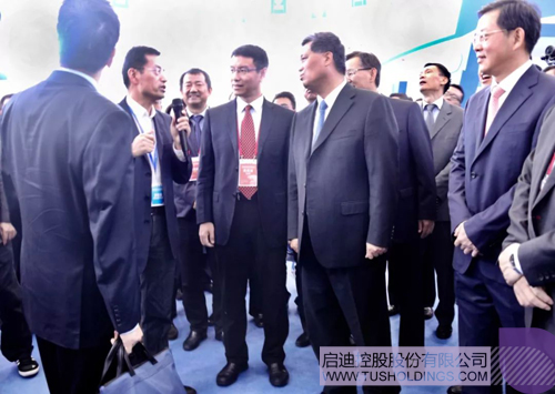 湛江市市長姜建軍(前排右三)、副市長歐先偉(前排右二)一行到湛江啟迪展位參觀