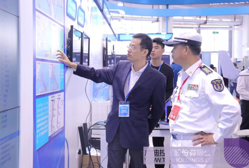 某艦隊領導饒有興趣地參觀湛江啟迪展區(qū),詳細了解集成了風暴潮、海浪等預警成果、實時雷達數(shù)據(jù)與海域無人機及海上無線通信技術的“啟迪海洋+”科創(chuàng)平臺