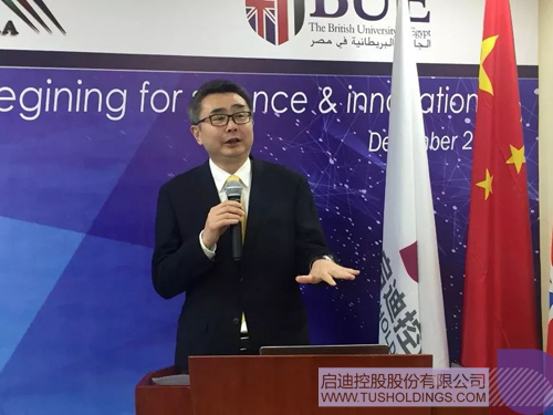 埃及BUE大學校長艾哈邁德?哈邁德在致辭時表示,埃及目前正在面臨著轉型升級的重要階段,科技創(chuàng)新將成為推進社會進步與經(jīng)濟發(fā)展的重要驅動力,因此BUE大學致力于打造全鏈條的創(chuàng)新生態(tài)系統(tǒng),并以此服務于埃及社會。哈邁德教授還表示,建設埃及的第一個大學科技園,任重而道遠,然而與啟迪控股這樣先進的科技服務企業(yè)合作,BUE大學有信心成功運營科技園。啟迪的在園區(qū)管理運營方面的成功經(jīng)驗以及其全球創(chuàng)新網(wǎng)絡,將為埃及的政府、大學、企業(yè)帶來新理念、新觀點和新方法,必將為埃及的科技創(chuàng)新領域注入新的活力。