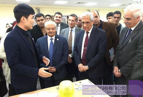 隨后,埃及BUE大學(xué)校長哈邁德教授、副校長葉哈頁教授一行來到埃及啟迪BUE科技園展廳,與來自中國的空氣凈化解決方案提供商亞都、RFID基礎(chǔ)芯片供應(yīng)商稻源微電子、無人機(jī)應(yīng)用領(lǐng)域的系統(tǒng)集成商遠(yuǎn)度科技、專注于骨傳導(dǎo)技術(shù)和應(yīng)用的寧波碩正科技、發(fā)燒級(jí)智能音響NatureVox、高密度Wi-Fi提供商鯤鵬無限、人工智能陪伴機(jī)器人iShareyoung、專注于智能健康領(lǐng)域產(chǎn)品研發(fā)的北京未元科技以及肝病無創(chuàng)診斷企業(yè)海斯凱爾等企業(yè)代表展開深入交流。此外,來自BUE大學(xué)的多個(gè)創(chuàng)業(yè)項(xiàng)目也參加了相關(guān)活動(dòng)。