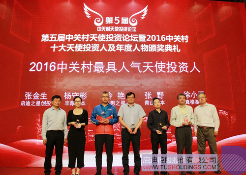 ▲ 啟迪控股副總裁、啟迪之星董事長(zhǎng)張金生(左四)當(dāng)選“2016中關(guān)村最具人氣天使投資人”