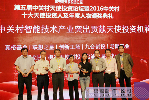 ▲ 啟迪之星創(chuàng)投(左一)榮膺“2016中關(guān)村智能技術(shù)產(chǎn)業(yè)突出貢獻(xiàn)天使投資機(jī)構(gòu)”