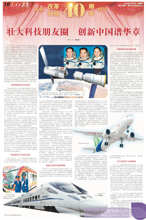 12月19日,人民日?qǐng)?bào)海外版出版發(fā)行《慶祝改革開(kāi)放40周年特刊》。《壯大科技朋友圈 創(chuàng)新中國(guó)譜華章》的專題文章提到:40年間,中國(guó)在一輪一輪深化科技體制改革的同時(shí),大力推動(dòng)形成科技領(lǐng)域全方位對(duì)外開(kāi)放格局,廣建科技創(chuàng)新全球朋友圈,不僅促進(jìn)了自身科技創(chuàng)新能力的持續(xù)提升,而且為推動(dòng)世界科技進(jìn)步作出了重大貢獻(xiàn)。