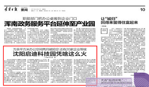 《遼寧日報(bào)》2017年04月21日A10版刊文——《萬余平方米辦公空間兩月被搶空還有20家企業(yè)等候 啟迪科技園(沈陽)憑啥這么火》