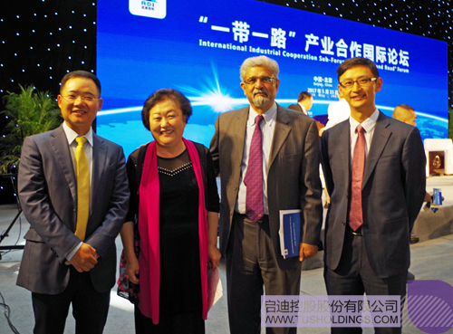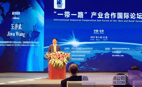 2017年5月15日, “一帶一路”產業(yè)合作國際論壇在京舉行。來自產、學、研等領域的專家匯聚一堂,共同探討“一帶一路”沿線國家的產業(yè)合作。會議由全國人大常委會委員、外事委員會副主任委員,中國社會科學院藍迪國際智庫項目專家委員會主席趙白鴿主持。啟迪控股董事長王濟武作為中國社會科學院藍迪國際智庫項目專家委員會成員且唯一企業(yè)代表,在論壇開幕致辭中發(fā)言。來自法國、埃及、印度尼西亞等國的政要和國內知名專家學者參加活動。