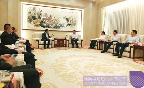 青島市政府相關(guān)領(lǐng)導(dǎo)與啟迪控股代表團合影