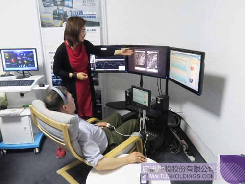參觀過程中,梅萌還向陳旭一行介紹了清華幸??萍紝?shí)驗(yàn)室的入駐項(xiàng)目,其中大都來自清華大學(xué)心理學(xué)系、電子系以及美術(shù)學(xué)院等院系,有可以助眠和監(jiān)測睡眠的眼罩,有通過監(jiān)測腦波獲取用戶當(dāng)前集中程度和疲勞度的頭帶,也有心理學(xué)與虛擬現(xiàn)實(shí)技術(shù)相結(jié)合的VR設(shè)備。陳旭一行還饒有興趣地體驗(yàn)了部分入駐產(chǎn)品。啟迪控股副總裁、清華幸福科技實(shí)驗(yàn)室主任張金生,清華幸??萍紝?shí)驗(yàn)室執(zhí)行主任王涌、副主任蘇塔娜參加上述活動。