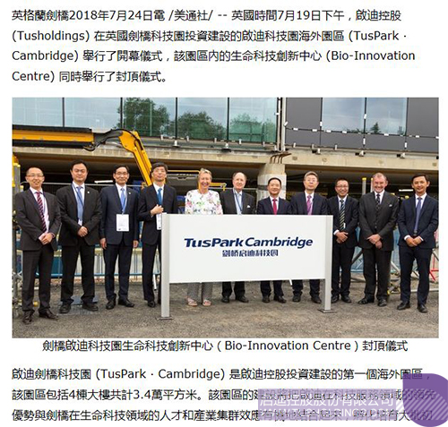 全球數(shù)百家媒體報(bào)道啟迪控股在英國(guó)劍橋投資建設(shè)運(yùn)營(yíng)科技園區(qū)打印