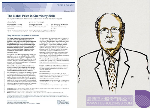 瑞典皇家科學(xué)院官方宣布本年度諾貝爾化學(xué)獎(jiǎng)歸屬,右圖為劍橋大學(xué)三一學(xué)院院長(zhǎng)Sir Gregory Winter漫畫(huà)肖像